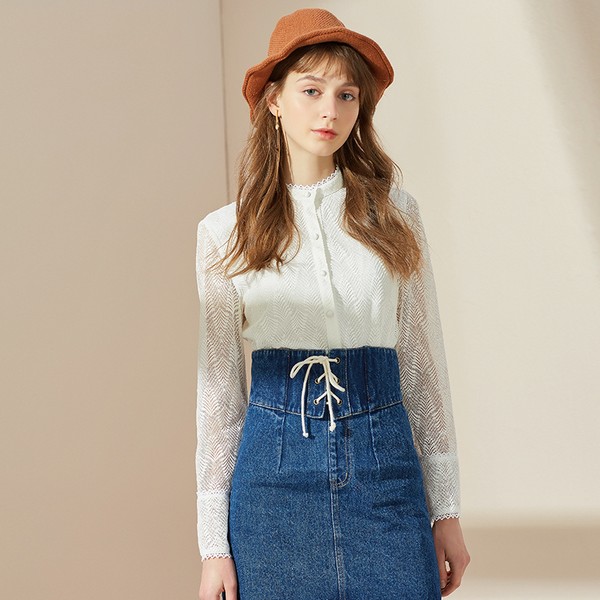 11 柔美花边与镂空细节让白衬衫显轻盈浪漫无比,细软蕾丝配合直筒廓形,柔美而不柔弱、立体有风骨,搭配上沿用相近的手段,反差又统一延续刚柔并济的对比感。