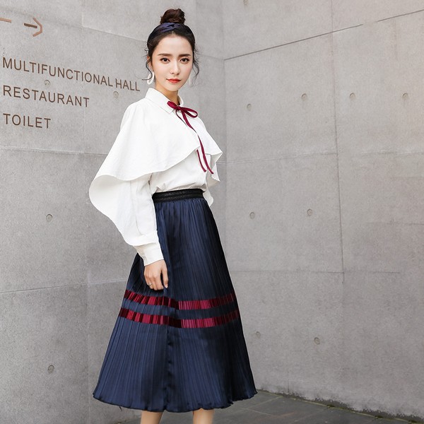 10 荷叶边从衣身延伸到衣袖,就像长了翅膀层次感凸显,个性剪裁包容性强对各种身材都能起到理想的修饰作用,且让白衬衫具备了斗篷廓形的优雅大气,撞色丝带点缀领口减龄俏皮。