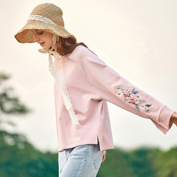 06 如果你以为卫衣还在固守传统的休闲那就大错特错。清新甜美,卫衣也能信手拈来,不行你看,那几朵立体花朵点缀的可还恰当?深色系的花朵单看并不出彩,但放在粉色的底色上就显得那般合适。