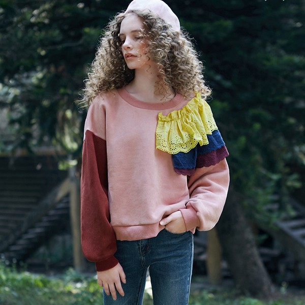 07 实在没有想到,撞色竟然以这样的方式出现在卫衣的世界里。衣袖的拼接已经够抢眼了,但毕竟是卫衣的传统姿态。左肩上的蕾丝拼接才是最让人瞩目的地方,用跳脱的色彩搭配卫衣的休闲,令人耳目一新。
