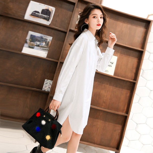 01 衬衫裙中最难舍的就是白色基础款,它的使用频率似乎没有上限,做外套做内搭收不收腰都有不同风格,无需顾忌季节变化,换季的王者至尊单品就是它,而这件的细长尖领可做两用,垂下犀利干练,简单打结优雅俏皮。