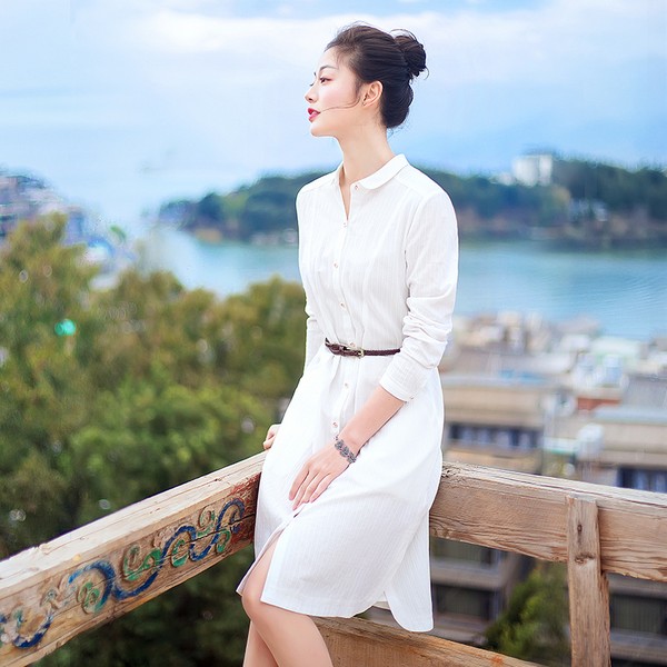 02 白色纯棉无装饰款是衬衫裙最简单纯粹的模样,系上细腰带就显精致干练,小蛮腰大长腿好比例精气神想要就有,不用担心它过于基础,选择一两样,在这张“白纸”上起到画龙点睛的神奇效果。