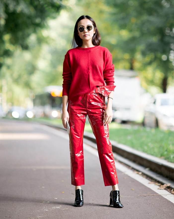 于是,时装周街拍处处可见“厉鬼红”。