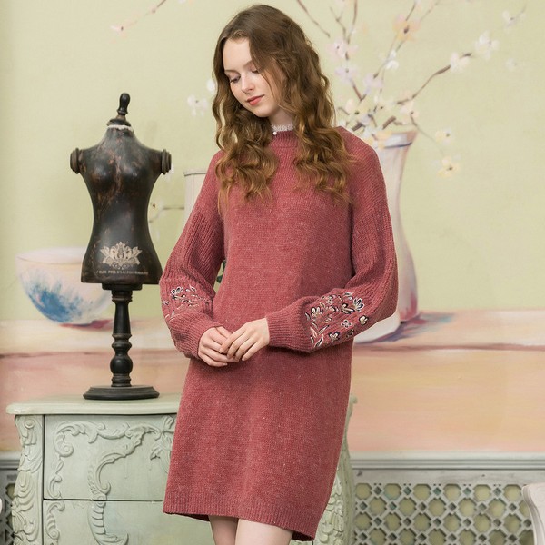 03 在没有成为内搭的时候,针织连衣裙还是需要点个性的。纯色的裙身也许是为了内搭做好准备,但灯笼衣袖点缀精致刺绣,是不甘于人后的自信。养眼耐看的铁锈红色相当有气质。