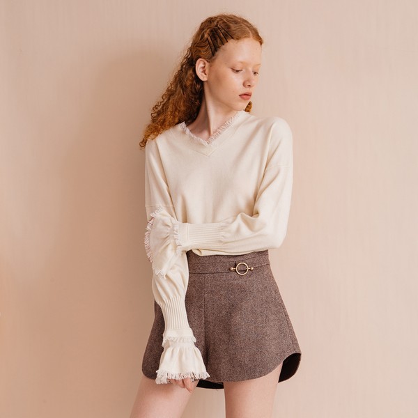 03 除了在腰间和口袋处花点小心思,衣袖的时尚也不能错过。这一次我们选择的是流苏,喇叭袖的甜美可爱因为流苏的加入多了一点设计感,领口和袖口相互呼应,细节元素的运用让单一的色彩不单调。