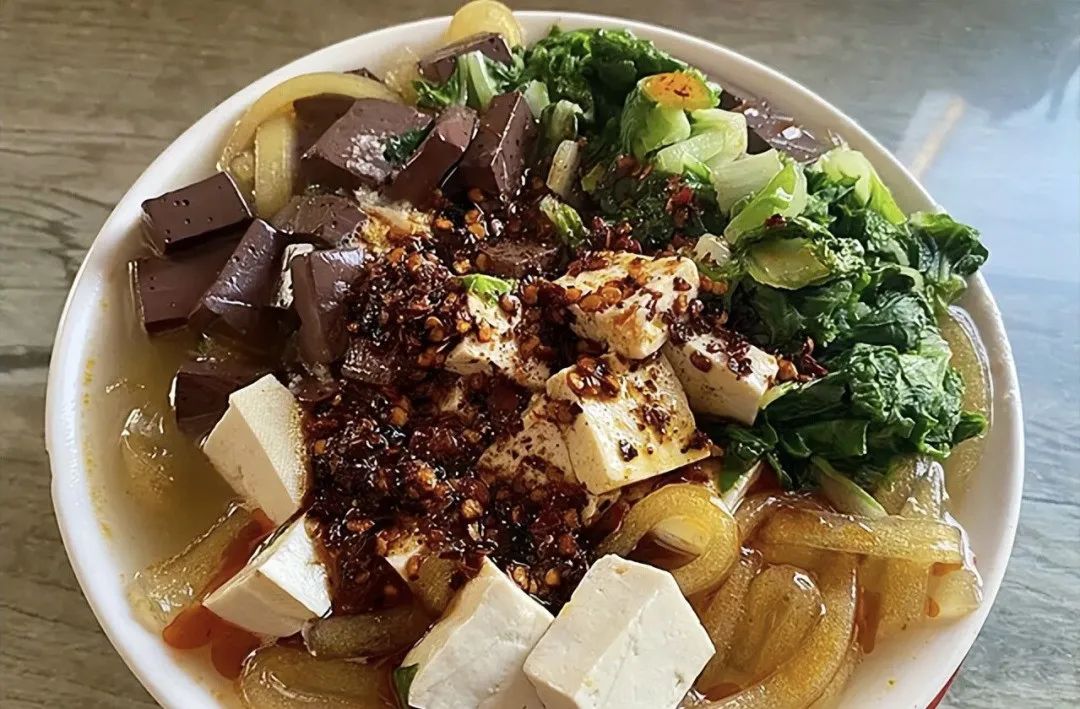 扁粉菜是安阳人最爱吃的美食之一,既可以做菜,也可以当主食。扁粉菜是以扁粉条为主料,加上猪血、豆腐、各种时令蔬菜以及高汤一起煮制而成的。扁粉菜好吃的关键在于高汤中,这高汤一般都是用猪大骨经过好几个小时慢慢熬煮出来的,喝起来香鲜味美,加上里面的红薯粉条也是清香可口,很受各位食客的青睐。